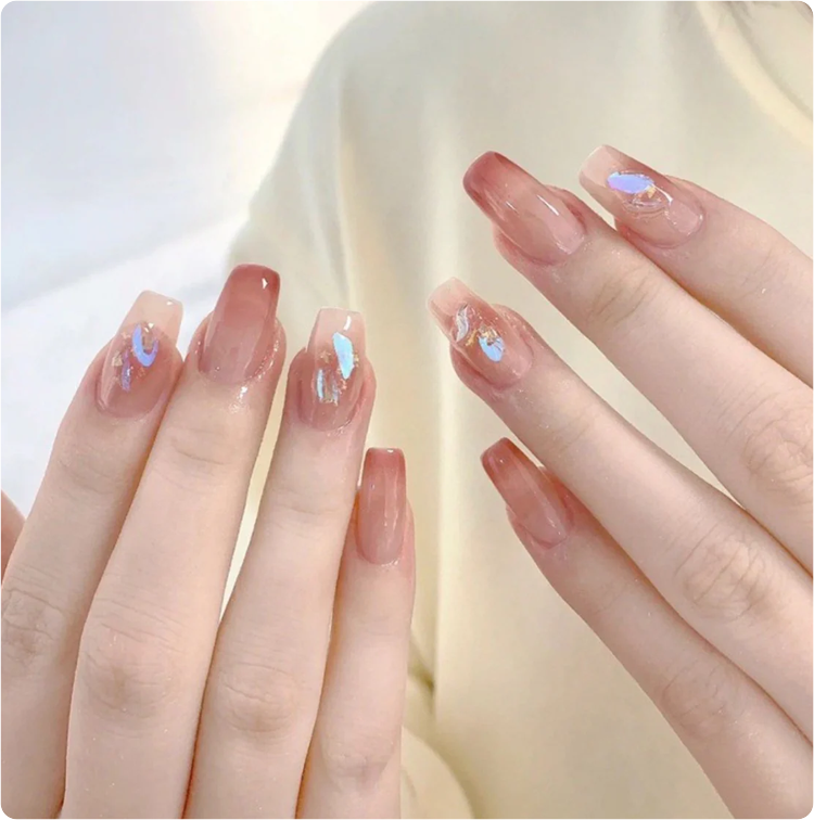 Press-on nails offer salon-style looks with pre-designed, adhesive nails. They're reusable and can last 1-2 weeks with jelly glue or over two weeks with solid gel glue and a UV/LED lamp, giving you long-lasting glam!